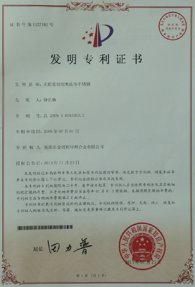 衡陽(yáng)市金則利特種合金股份有限公司成立于一九九九年十二月,注冊(cè)資本人民幣兩千兩百萬(wàn)元。注冊(cè)地址:衡陽(yáng)市雁峰區(qū)白沙洲工業(yè)園長(zhǎng)塘路2號(hào)。公司主營(yíng)耐蝕軟磁合金,為湖南省高新技術(shù)企業(yè)。公司自成立以來(lái),即致力于耐蝕軟磁合金的研發(fā)。 研制出的JL-31(00Cr13si2Pb)、JL-31B(00Cr13si2)、JL-31BS(00Cr13Si2S)、JL-37B(0Cr17Si2)、JL-37(0Cr17···